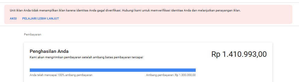 Kali ini saya ingin berbagi pengalaman kepada para publisher (penayang) lain tentang bagaimana cara mengatasi mengatasi gagal verifikasi identitas google . Cara agar proses verifikasi identitas google adsense berhasil. Lalu apa penyebab gagal verifikasi identitas google adsense? Supaya verifikasi identitas dan verifikasi pin /alamat nantinya bisa mudah diterima. Berikut ini selengkapnya artikel tentang cara mengatasi gagal verifikasi identitas ktp untuk adsense , semoga bisa bermanfaat untuk kalian . Oke, karena sudah pernah melewati tahap ini, saya akan membagikan pengalaman saya ketika melakukan verifikasi indentitas di google adsense. Karena jika anda teliti pastinya langkah verifikasi data di google adsense akan mudah berhasil. Jika gagal melakukan verifikasi sebanyak 3 kali, maka akun adsense akan di suspended (ditahan) oleh google, artinya semua penghasilan adsense . Di langkah pertama ini, saya harus memastikan kesesuaian antara nama pada . Cara sukses upload ktp/ sim/ paspor untuk verifikasi identitas akun adsense. Banyak yang gagal saat verifikasi identitas google adsense karena foto yang dikirimkan kurang jelas. Oke, langsung saja ke topik ya… dalam akun . 31 january 2019 pro adsense.